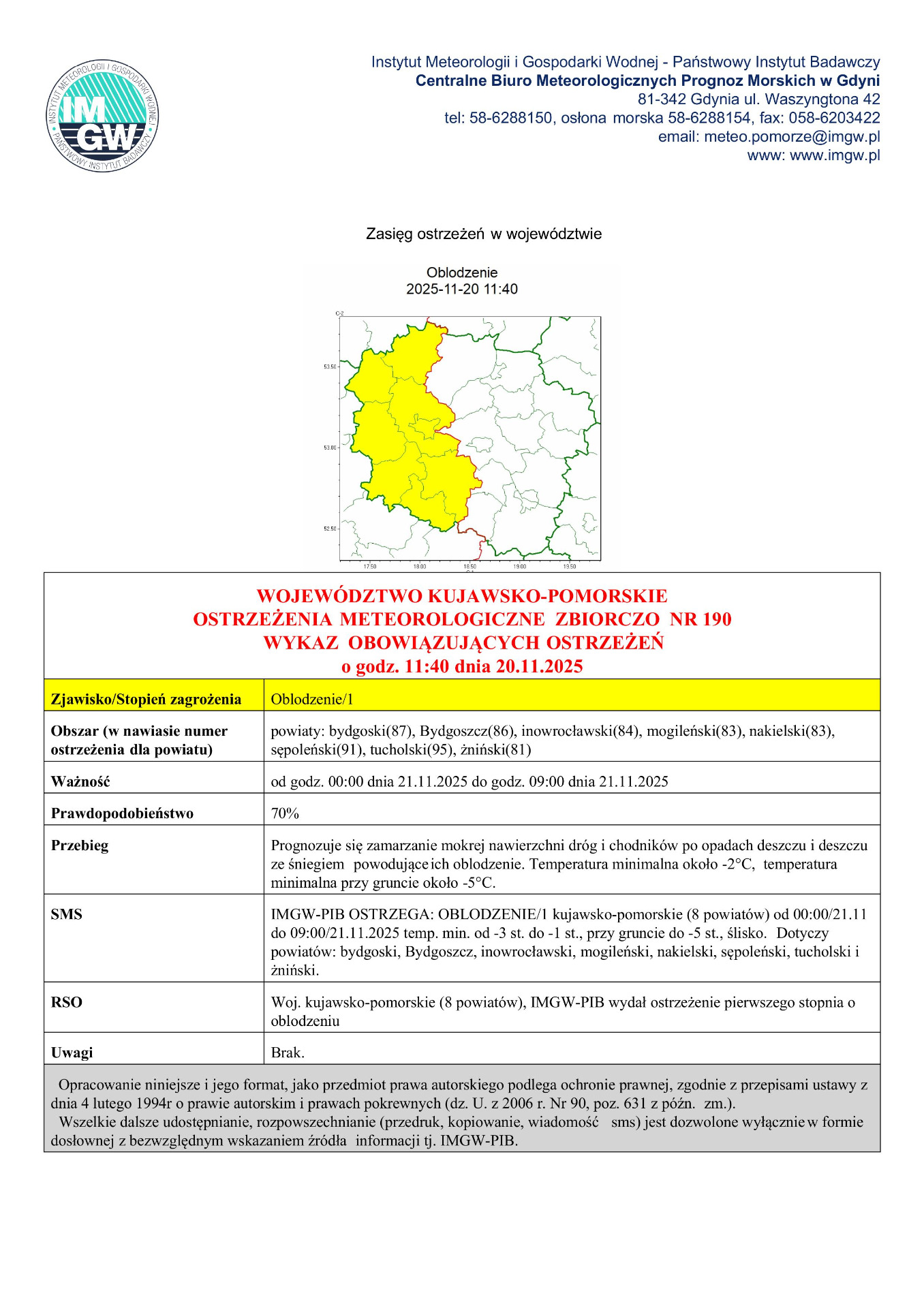 Uwaga na możliwe oblodzenia.