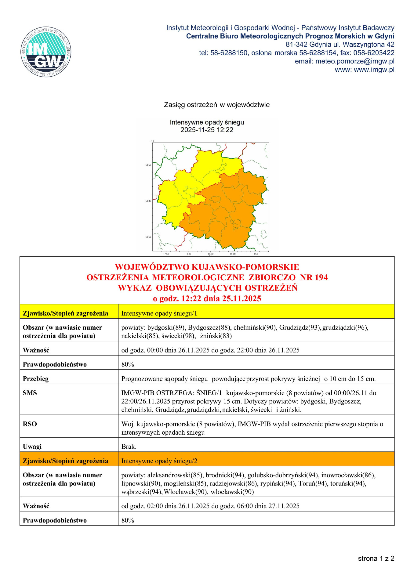 Trudne warunki pogodowe i możliwe oblodzenia.