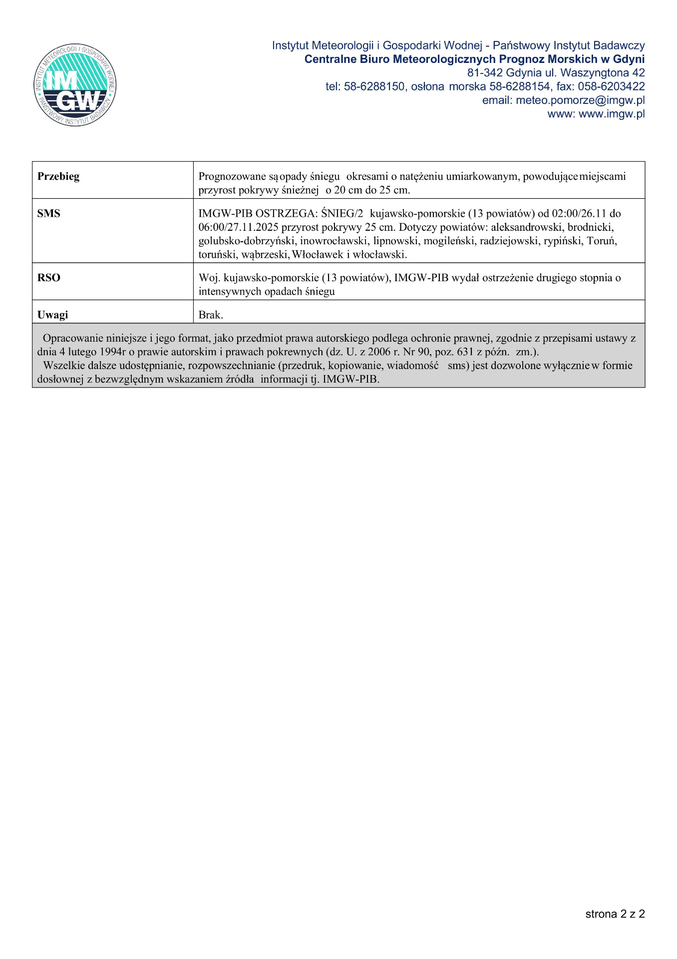 Ostrzeżenie meteorologiczne przed marznącymi opadami.