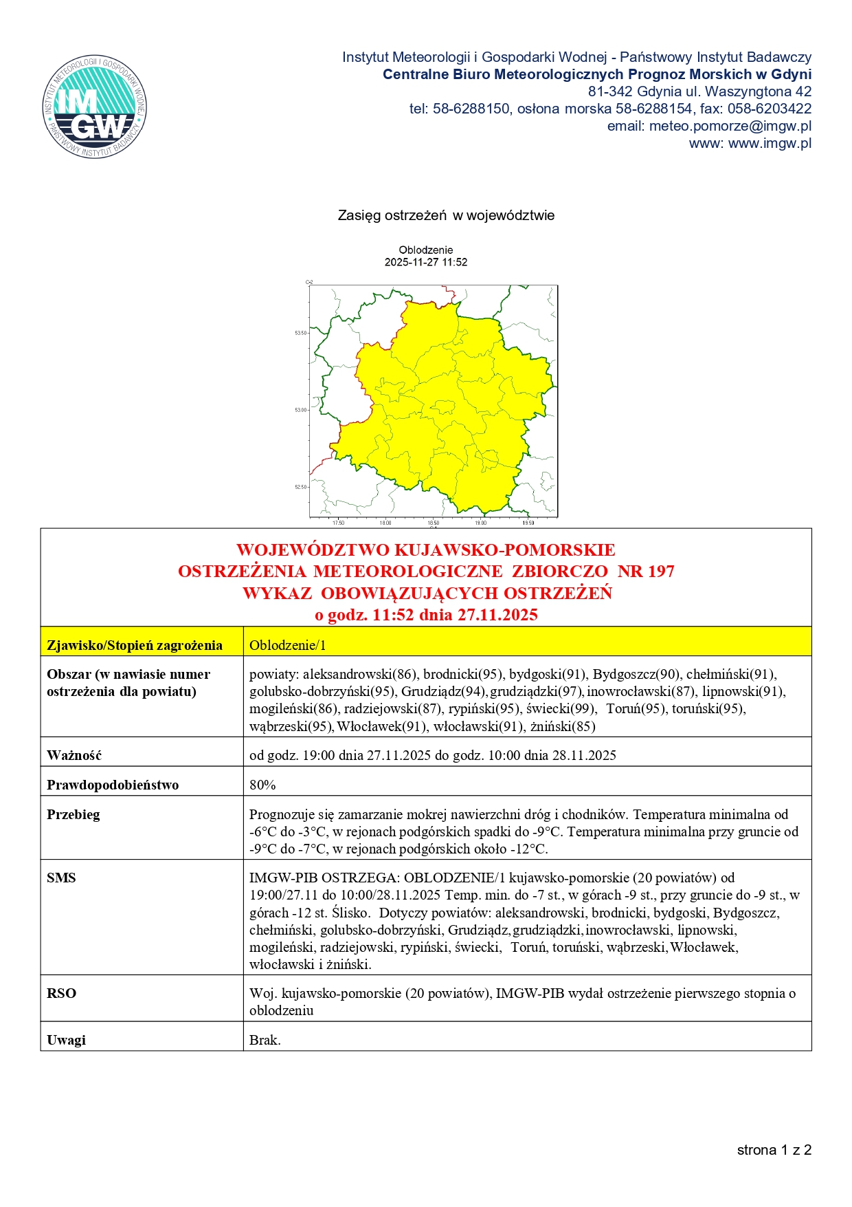 Trudne warunki pogodowe i możliwe oblodzenia.