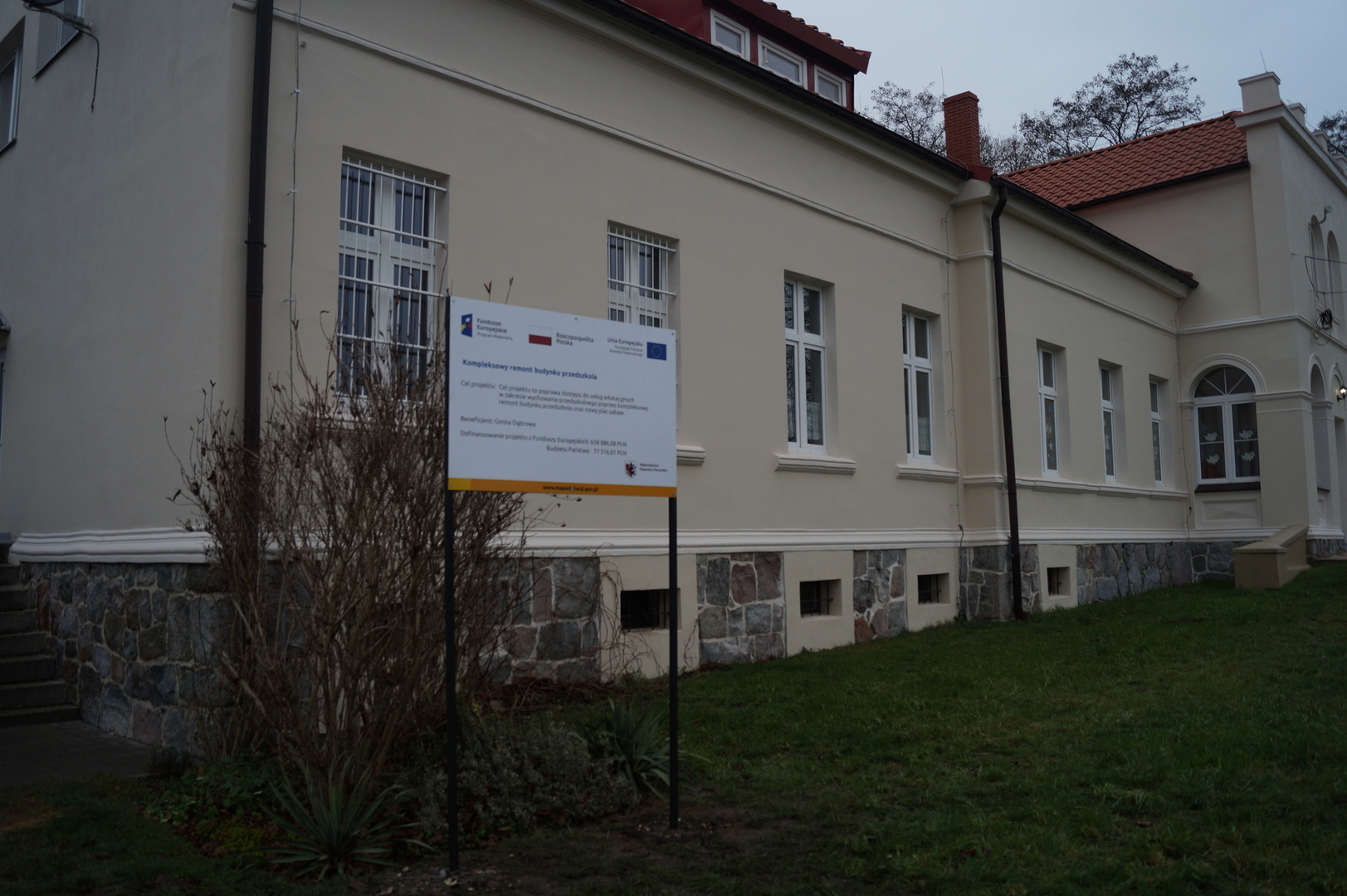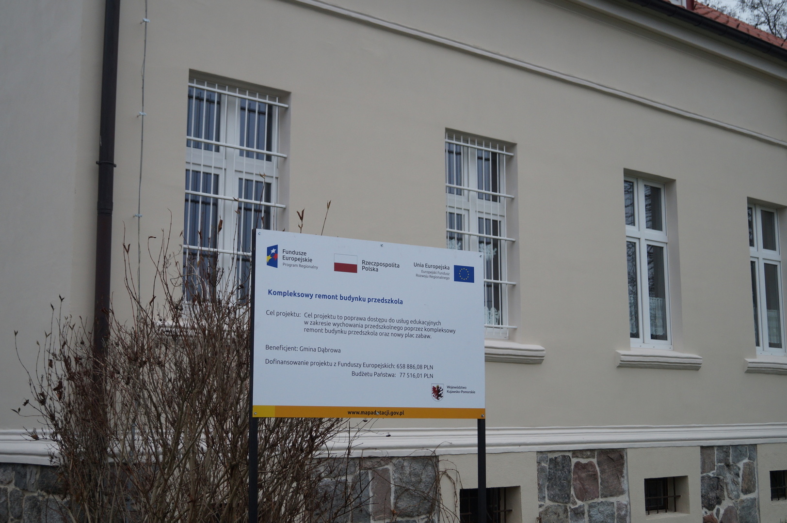 Gmina Dąbrowa realizuje projekt pn. „Kompleksowy remont budynku przedszkola”.